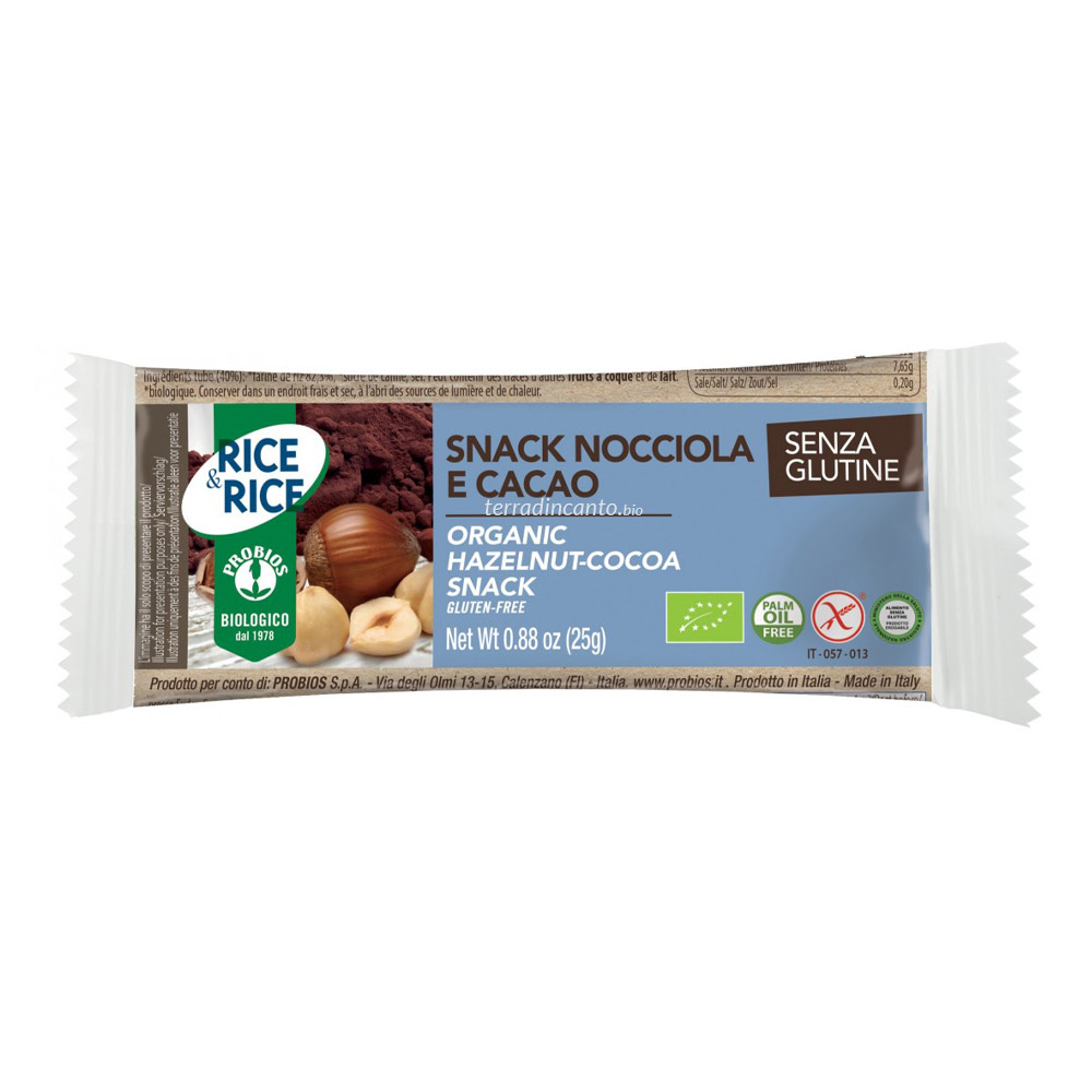 Leggero e croccante snack di riso senza glutine ripieno con morbida crema di nocciola con zucchero di canna. Lo snack nocciola è senza lievito e senza glutine, inoltre è una sfiziosa fonte di fibre.