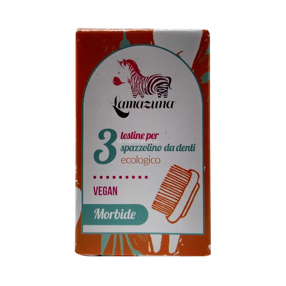 Testine di ricambio con setole MEDIE in nylon e ABS made in Italy. Adatte per spazzolini Lamazuna. Conf. da 3 pz. Prodotto Ecofriendly.