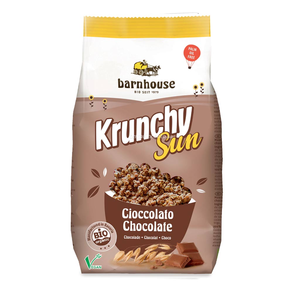 Fiocchi integrali d'avena 61%, zucchero di canna, olio di girasole 11%, riso estruso (riso, malto d'orzo, sale marino), fiocchi integrali di frumento, cioccolato al latte 3,6% (zucchero di canna, burro di cacao, latte intero in polvere, pasta di cacao), cacao in polvere 2,6%, cocco, sale marino.