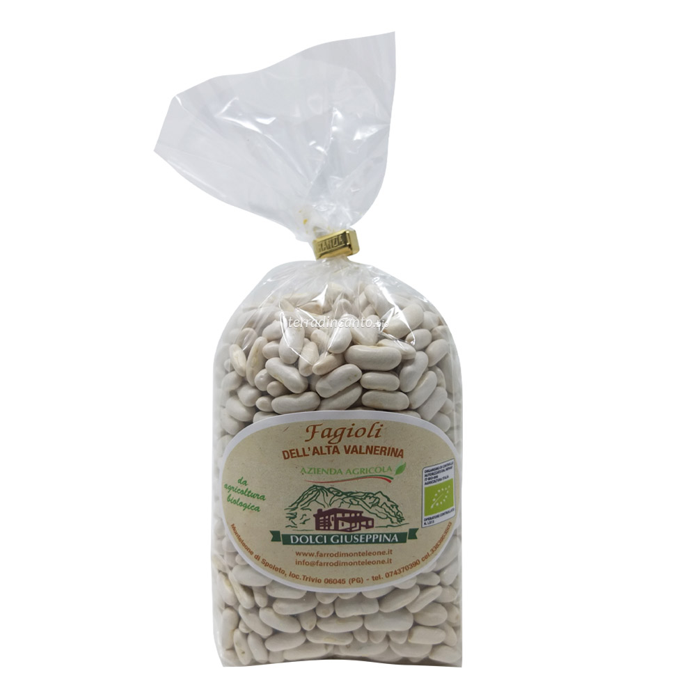 Cannellini coltivati nella Valnerina in Umbria. La buccia è sottile e il gusto delicato. Ottimi consumati da soli con un flio d'olio buono con dei crostini di pane oppure, abbinati ad altri cereali, zuppe, pasta e riso.