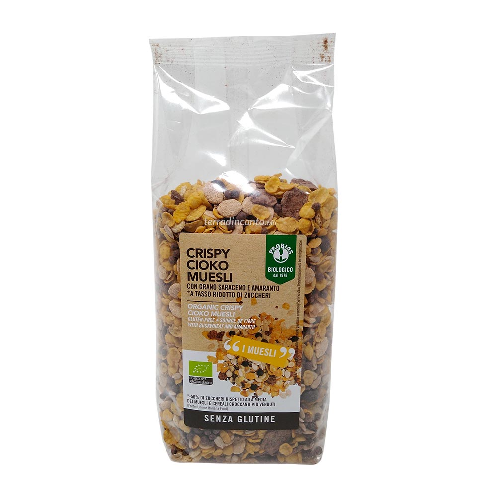 *semola di mais, *cioccolato fondente 19,5% (* massa di cacao, *zucchero di canna, *burro di cacao), *semi di girasole, *semolino di mais, *farina di grano saraceno 4,7%, *farina di riso integrale, *farina di riso, *zucchero di canna, *farina di amaranto tostata 2%, *cacao in polvere, sale marino, emulsionante: *lecitina di girasole. *biologico.