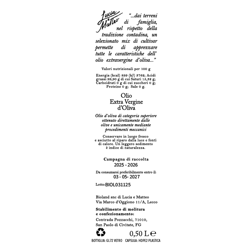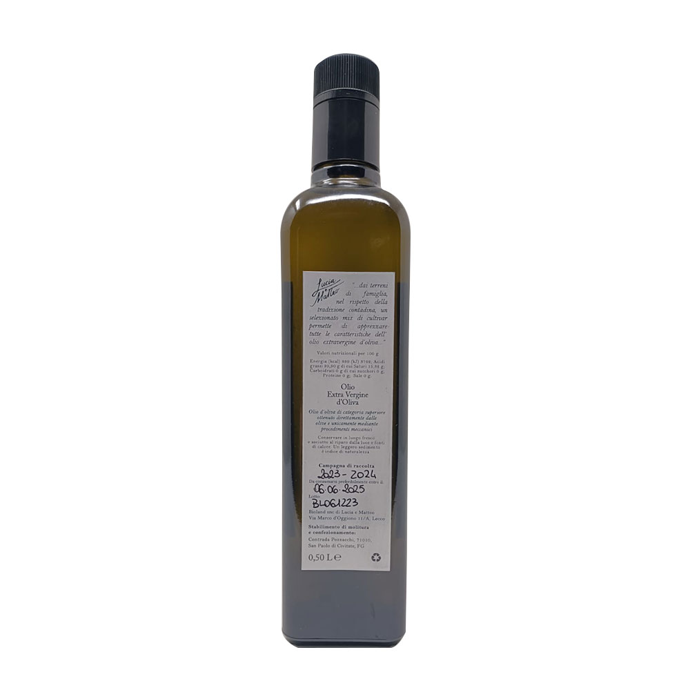 CAMPAGNA DI RACCOLTA 2025-26. Un selezionato mix di Cultivar tra cui Peranzana, Frantoio, Moraiolo e Coratina permette di apprezzare tutte le caratteristiche dell'Olio Extra Vergine.