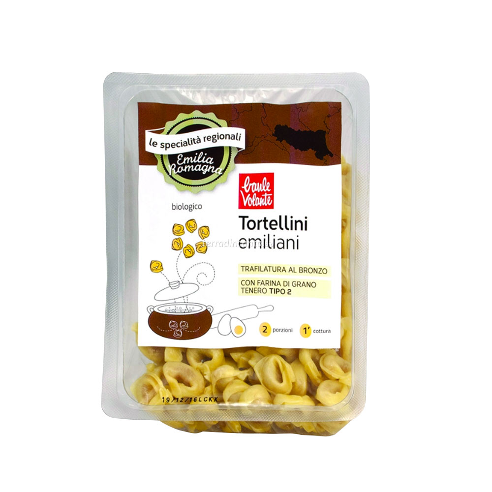 Farina di grano tenero* tipo 2 47%, uova* 13%, mortadella* 11% (carne di suino*, sale, aroma naturale di verdure, destrosio*, spezie*, piante aromatiche*, antiossidante : acido ascorbico), preparazione a base di carne bovina e suina* (carne bovina*, carne suina*, carote*, cipolle*, rosmarino*, sale), pane grattugiato* (farina di grano tenero* tipo 0, lievito, sale), acqua, Parmigiano Reggiano DOP* (latte*, sale, caglio), prosciutto crudo* 3% (carne di suino*, sale), sale, noce moscata*. (*da agricoltura biologica)
