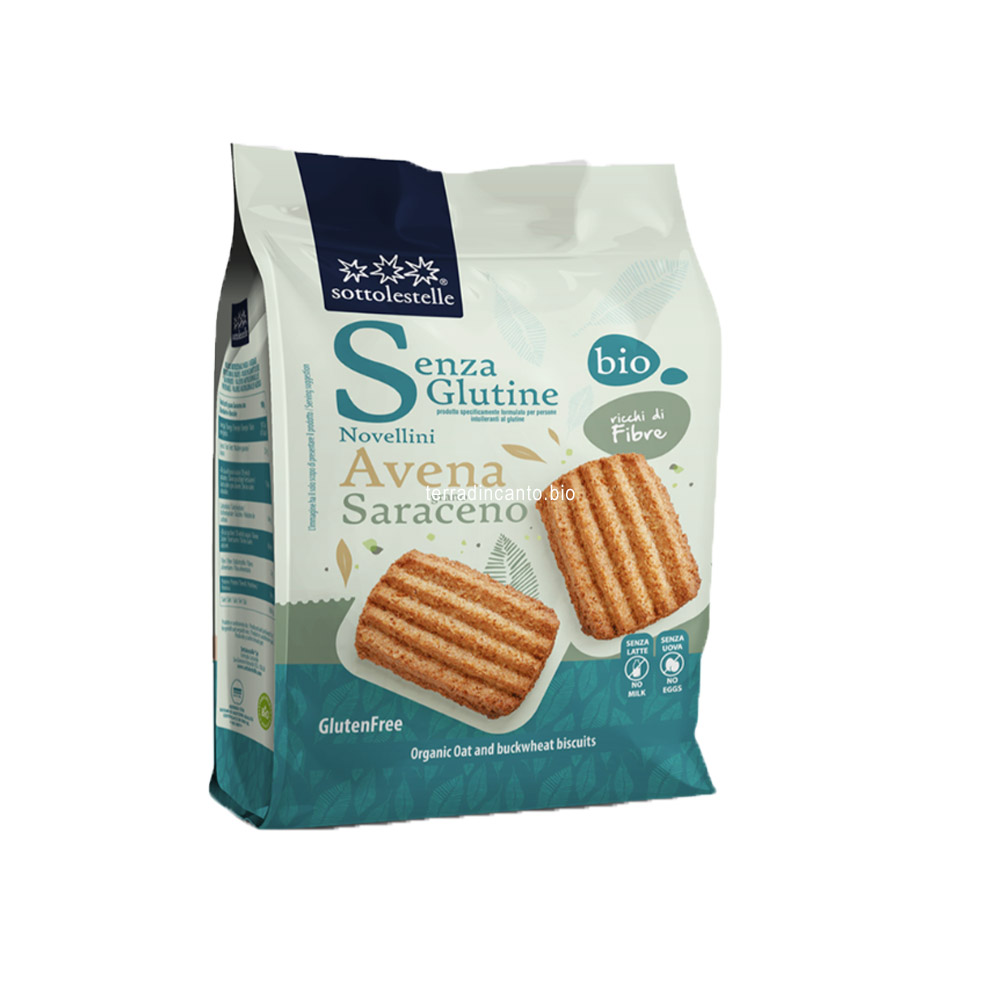 farina integrale di avena senza glutine*, zucchero di canna*, olio di girasole alto oleico*, farina di grano saraceno*, farina di riso*, fibra di mela*, sciroppo di riso*, carbonati di sodio, carbonati di ammonio, estratti di rosmarino*, aroma naturale di vaniglia*, gomma guar*