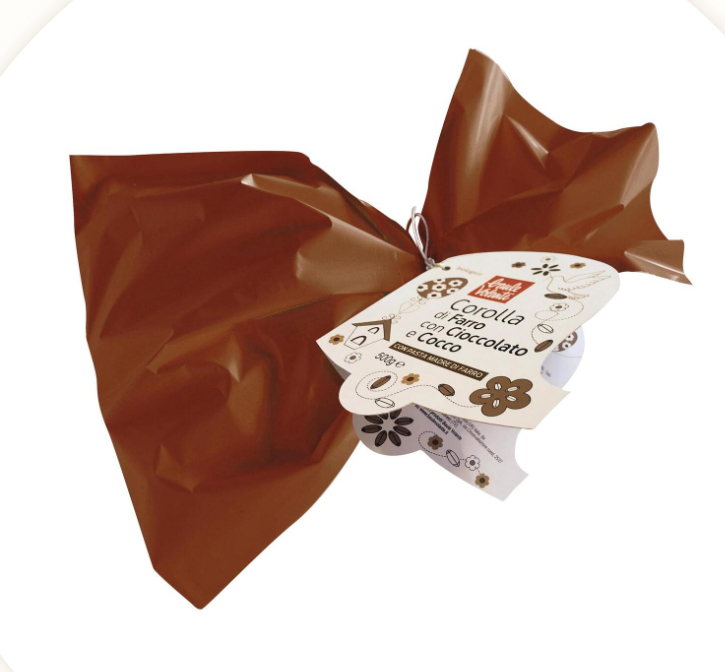 Farina di farro 33%, zucchero di palma 19%, olio di girasole, gocce di cioccolato fondente 9% (zucchero di canna, pasta di cacao, burro di cacao, estratto di vaniglia), lievito da pasta madre 9% (farina di farro, acqua), cocco in scaglie 6%, burro di karite, emulsionante:lecitina di girasole, malto d'orzo, farina di soia, aroma naturale di agrumi, sale, aroma naturale di vaniglia. Bustina di zucchero a velo (zucchero di canna, amido di tapioca).